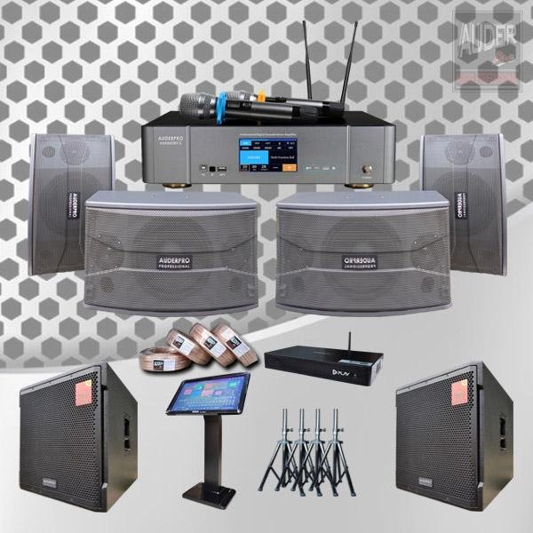 PAKET KARAOKE D2: MIXER HARMONY 5 + SPEAKER AUDERPRO 10 INCH + SUBWOOFER 15 INCH + MESIN LAGU HDD PLAY 2TB, TERDIRI DARI: