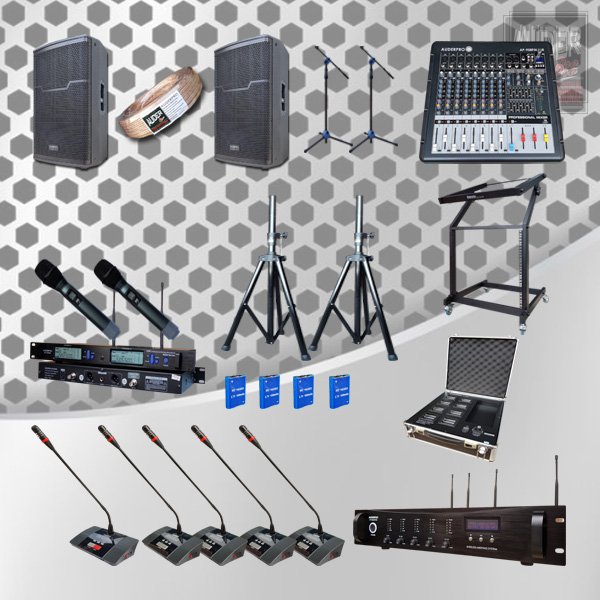 Paket AUDERPRO Wireless Conference R8 Pakai 6 Mikrofon + Sound System, Terdiri Dari: